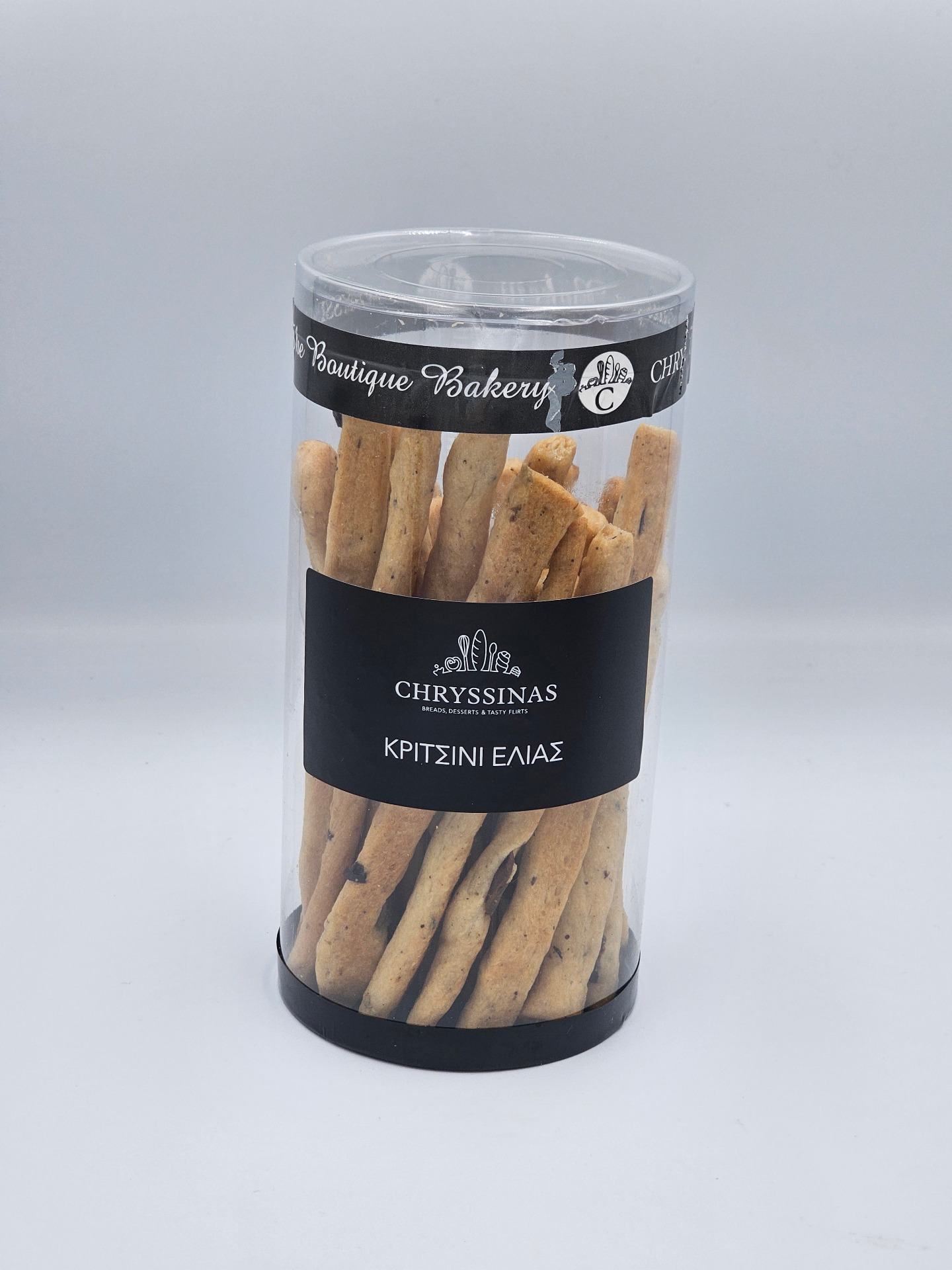 Τα Κριτσίνια Ελιάς CHRYSINAS παρασκευάζονται με προσεκτικά επιλεγμένα υλικά και εξαιρετικό παρθένο ελαιόλαδο, προσφέροντας τραγανή υφή και αυθεντική μεσογειακή γεύση. Η διακριτική παρουσία ελιάς προσθέτει βάθος και αρωματικό χαρακτήρα, χωρίς να καλύπτει την ισορροπία του ζυμαριού.