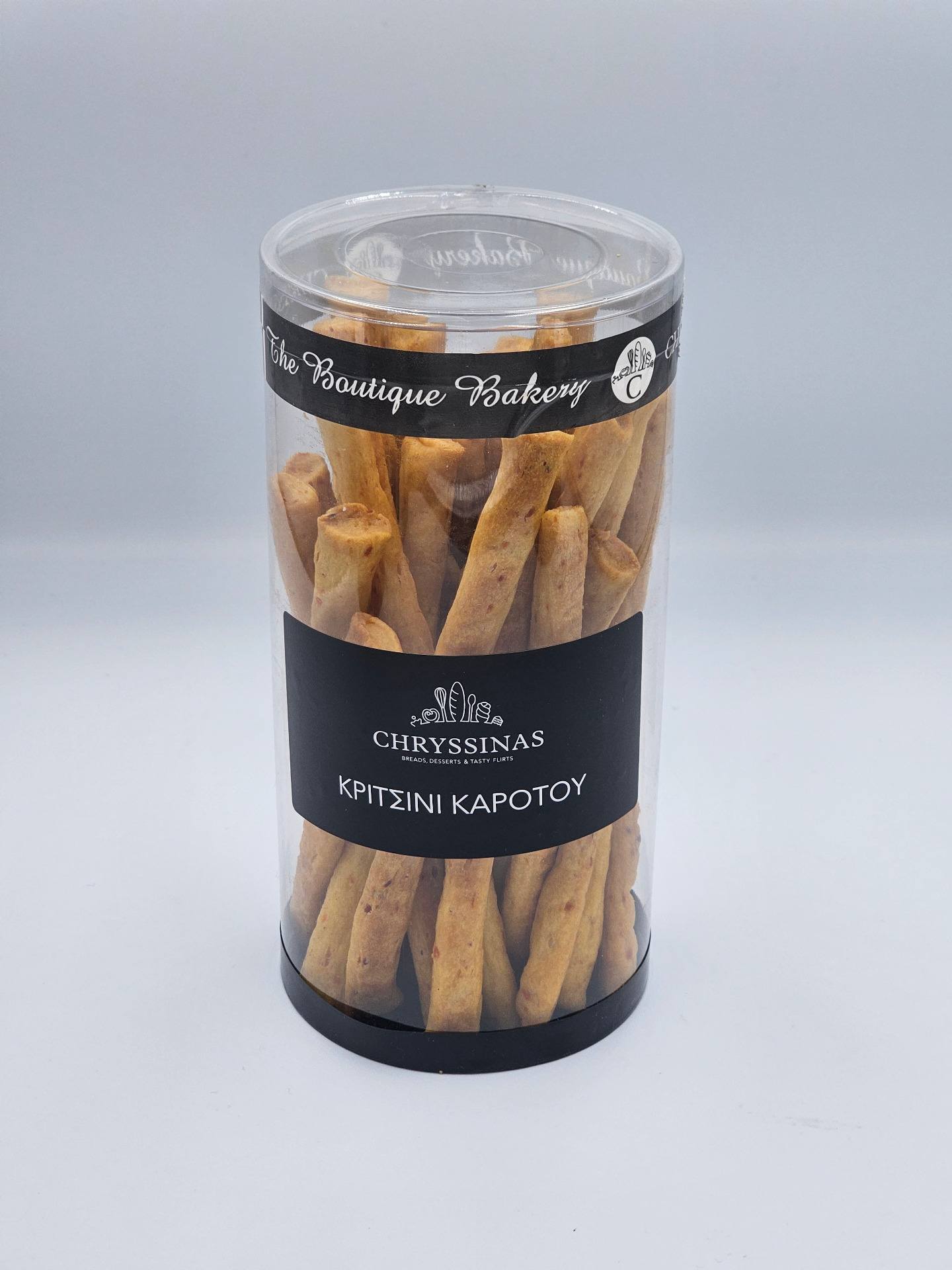 Τα Κριτσίνια Καρότου CHRYSINAS συνδυάζουν τραγανή υφή με φυσική γλυκύτητα και διακριτικές φυτικές νότες. Παρασκευασμένα με προσεκτικά επιλεγμένα υλικά, το καρότο προσδίδει ισορροπημένη γεύση, ζεστό χρώμα και μια ήπια, ευχάριστη αίσθηση που τα καθιστά ιδιαίτερα ευέλικτα στο σερβίρισμα.