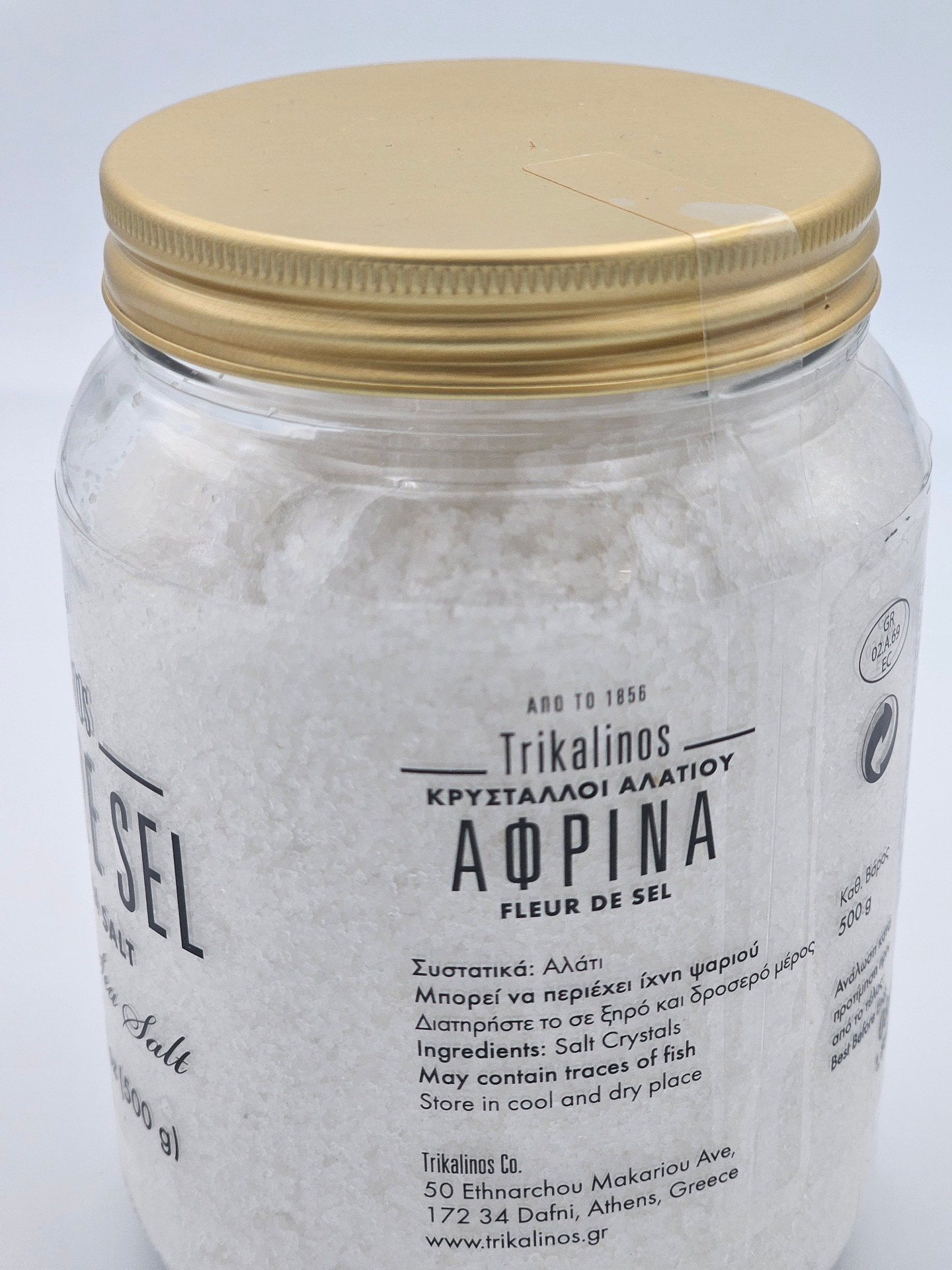 Trikalinos Fleur de Sel is a premium hand-collected sea salt from the traditional salt pans of Aitoliko-Messolonghi.