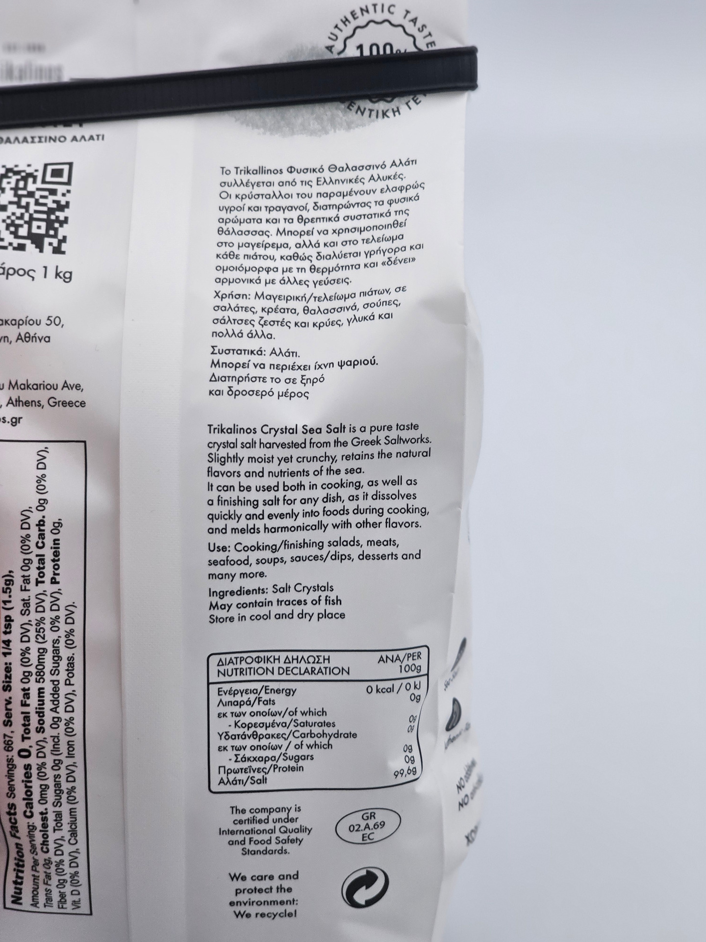 Ingredients: Natural sea salt (may contain traces of fish)