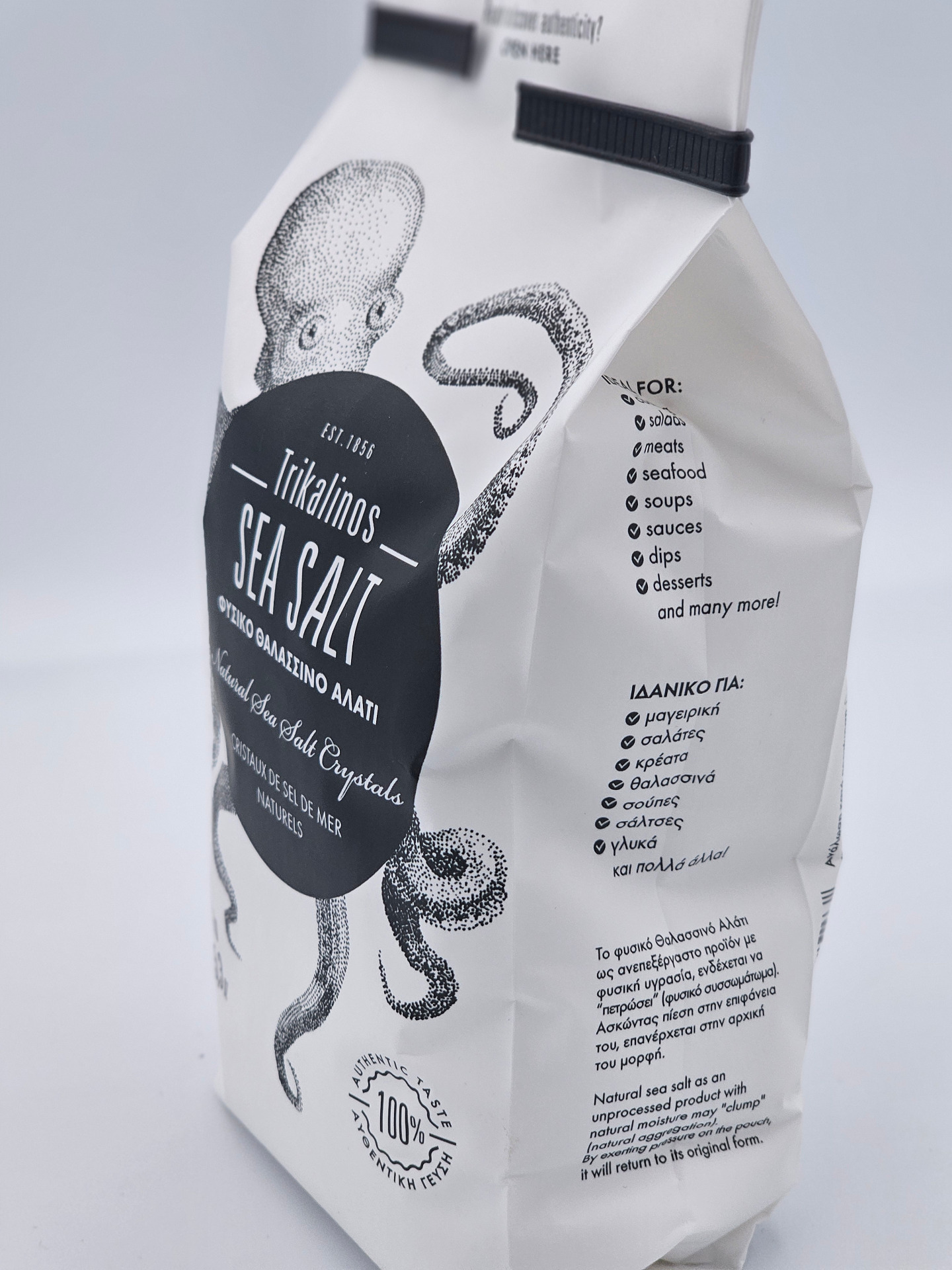 The Trikalinos Natural Sea Salt is harvested from the traditional salt pans of the Aetoliko–Messolonghi lagoon, using natural, unrefined methods.